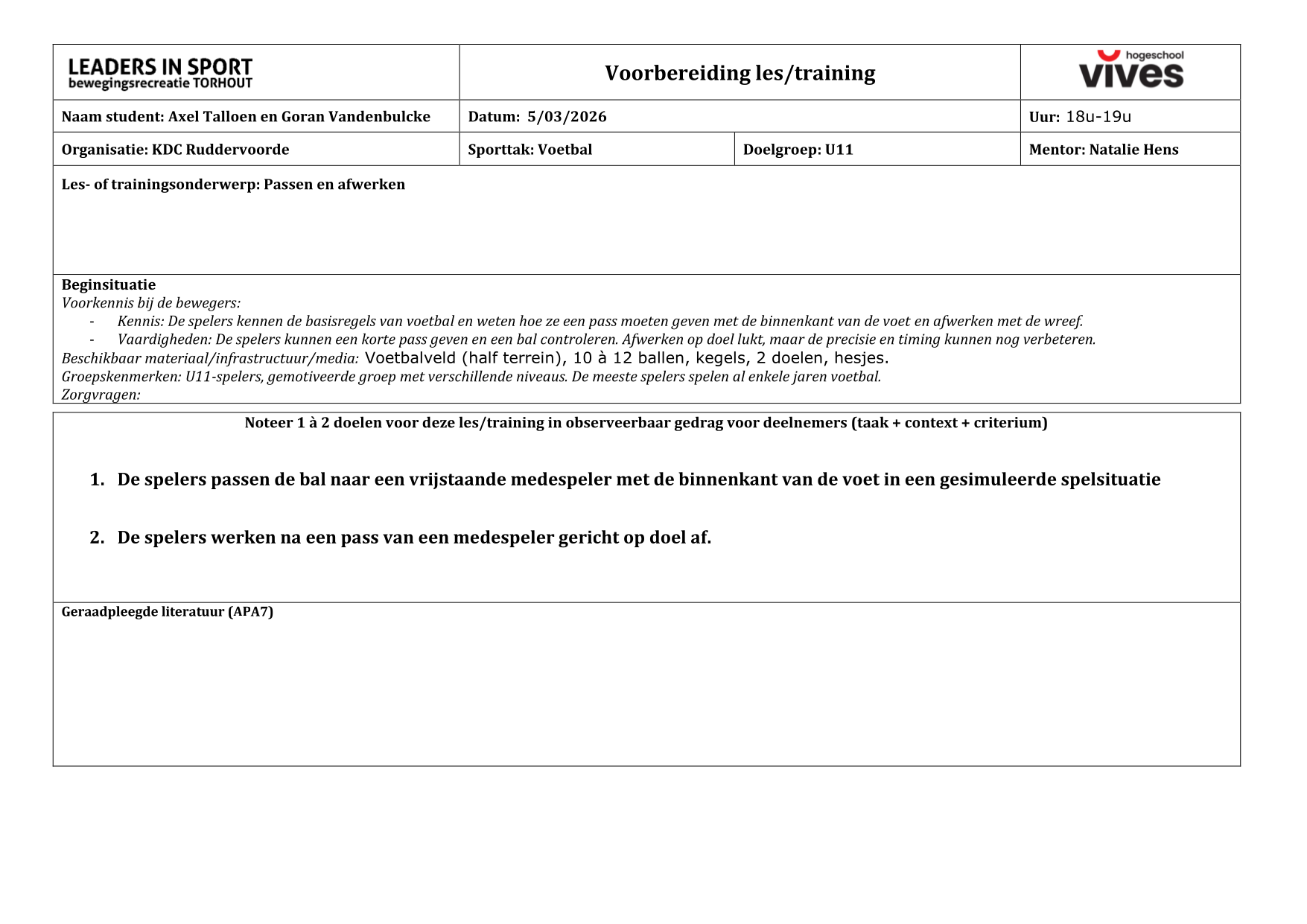 TT+16 een voorzet trappen die bruikbaar is voor doel