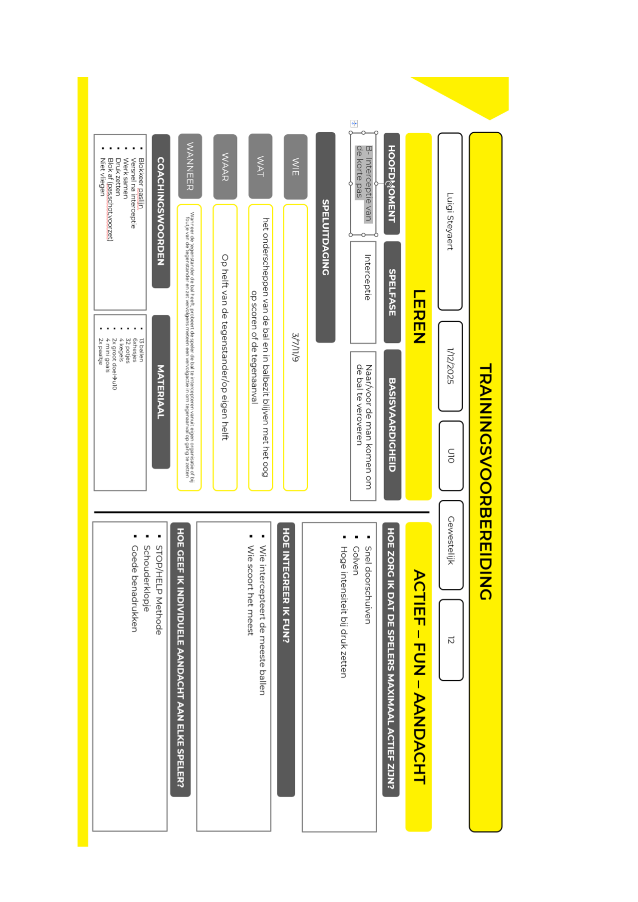 B- Interceptie van de korte pas